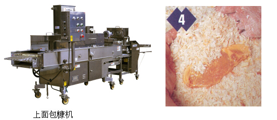 ·油炸时面包糠的水分和油互相交换,变成发脆的效果,油炸至上色的状态。