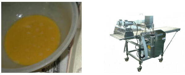 .过面包糠的鱿鱼在油中炸,加工出外脆内软的鱿鱼。