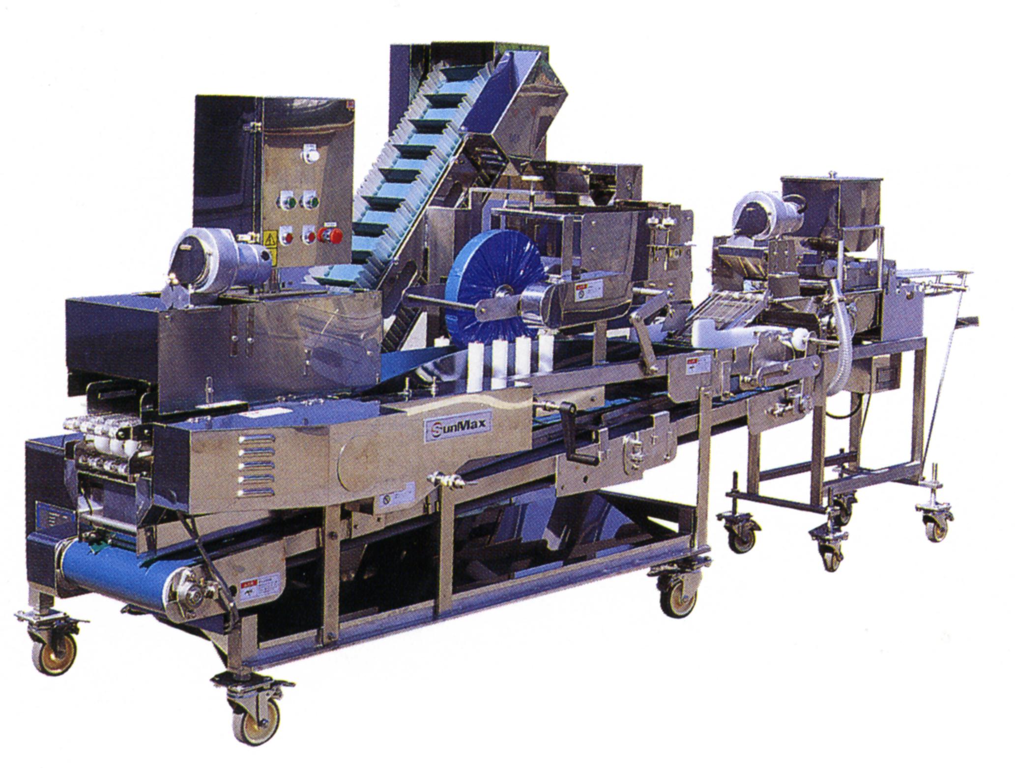 弊公司的成型机的成型原理是用螺旋缓慢挤压,物料在模具内成型,再用凸轮顶出来,钢琴丝剥离产品。非常适合作虾饼成型,不会挤碎虾仁。需要注意螺旋的速度和成型速度的匹配。螺旋推进的速度过快会挤碎虾仁。
